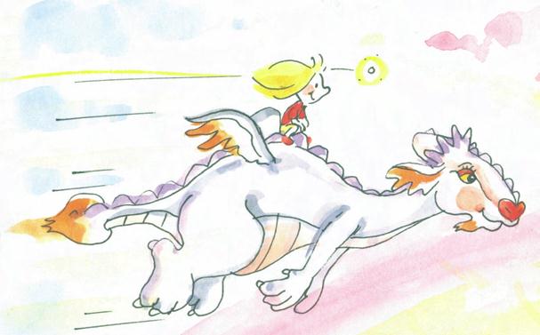 In der Fantasie fiegen Papui und das “Kleine-Etwas“ weg von zu Hause. Sie landen in einem Vulkan und treffen dort auf den Drachen Draggy.