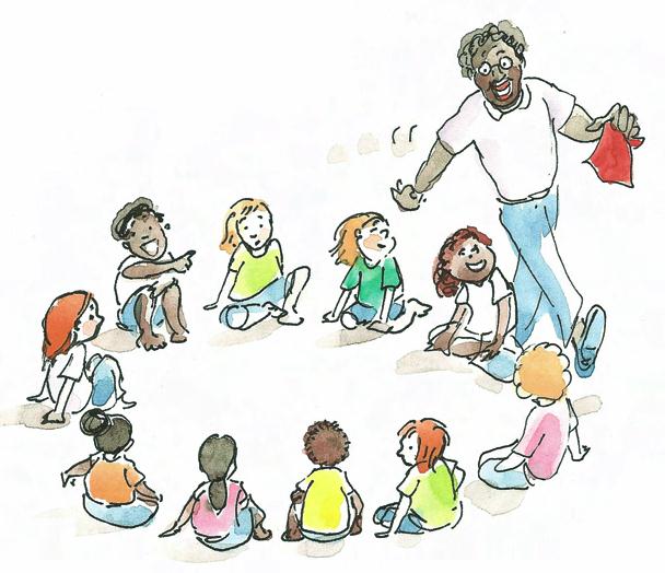 Die Kinder sitzen im Kreis auf dem Boden. Sie sind alle Mäuse. Der /die LeiterIn ist die Katze und hat ein Taschentuch in der Hand.